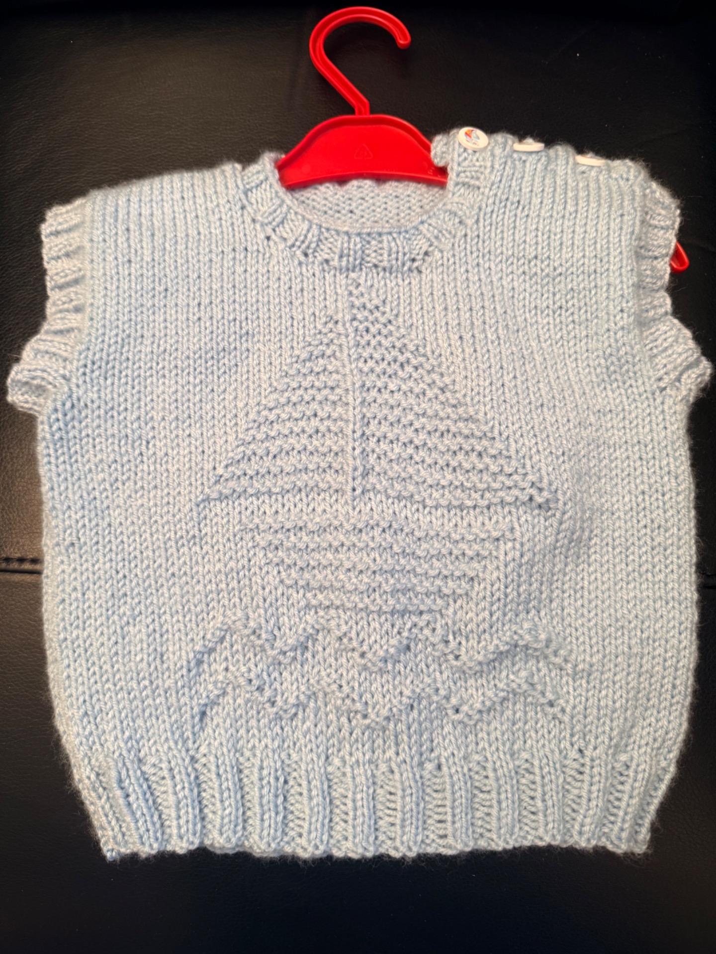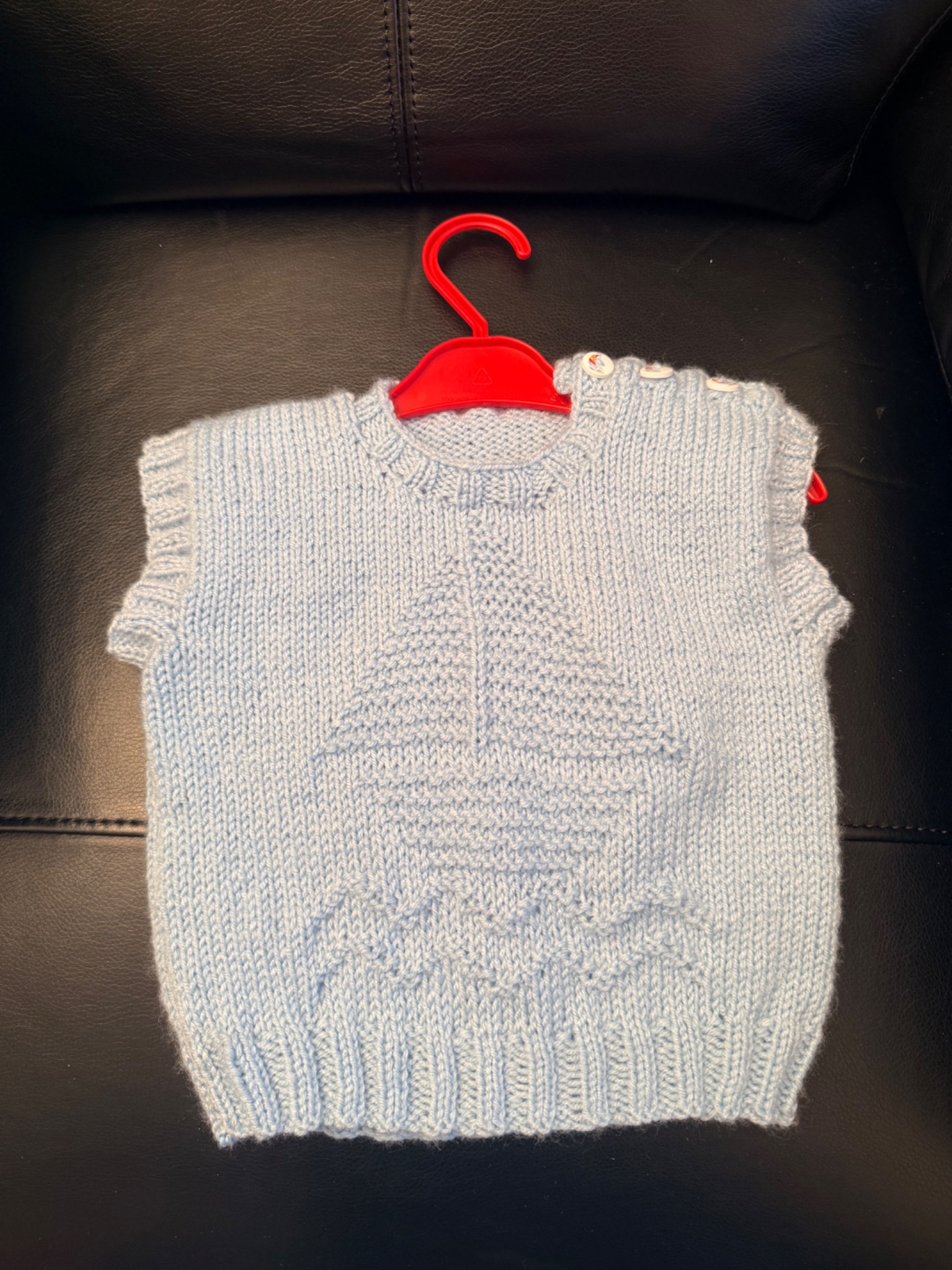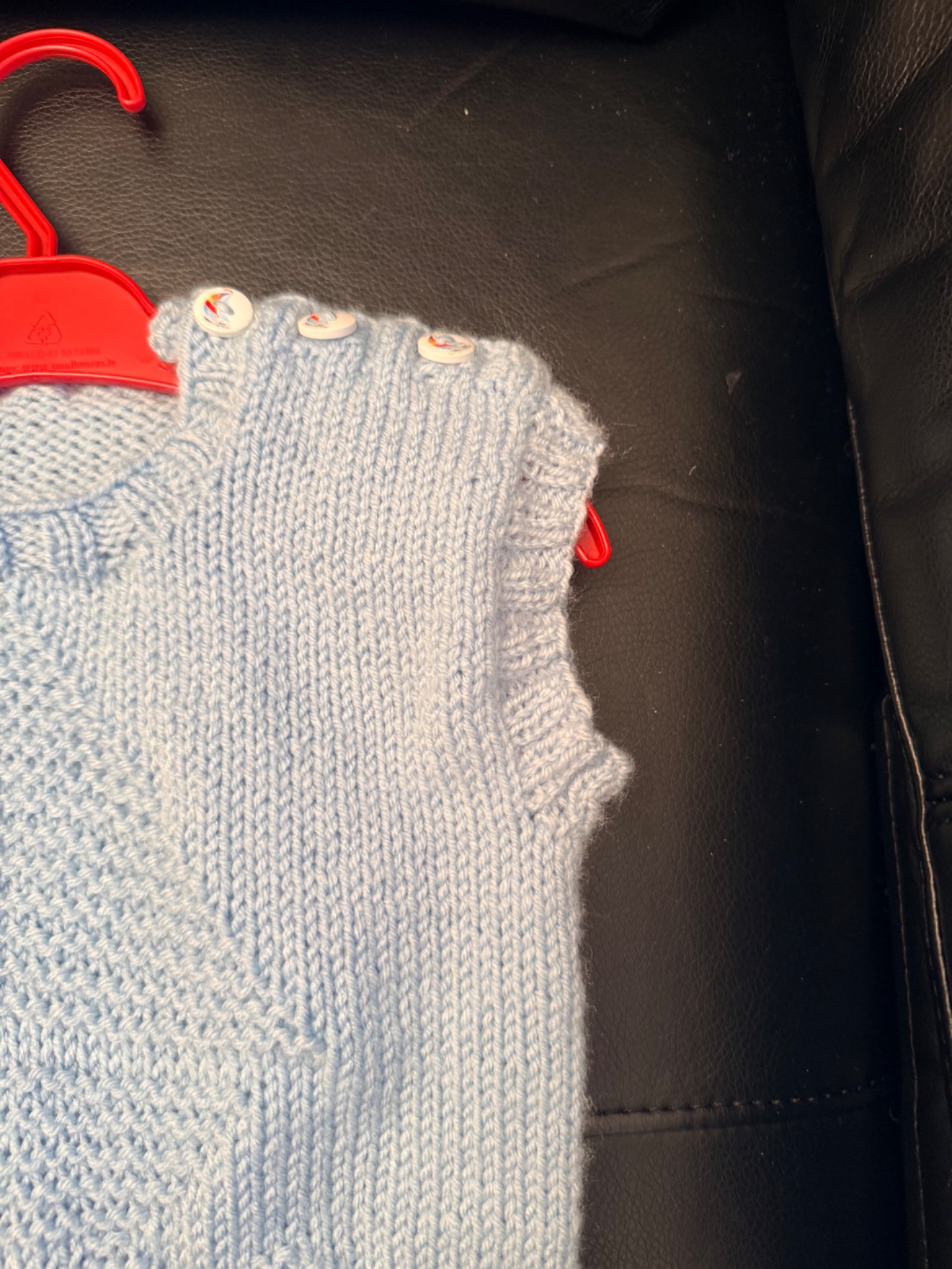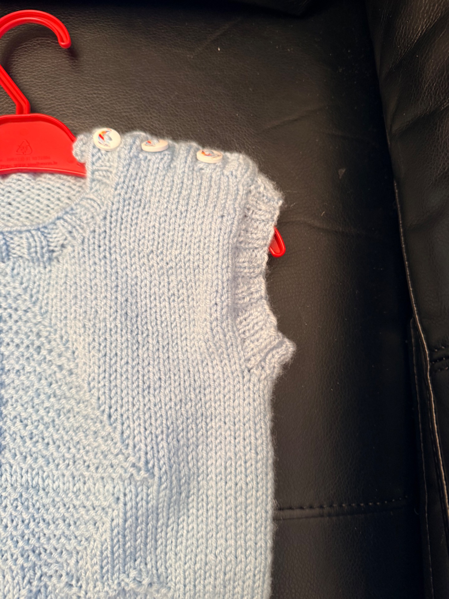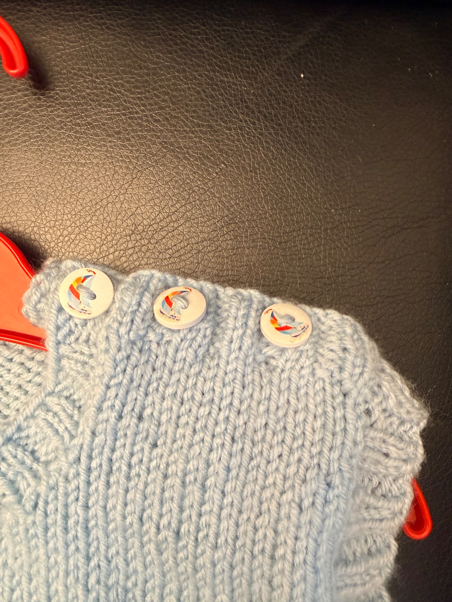 a blue sleeveless sweater with buttons on shoulder 3-6 months